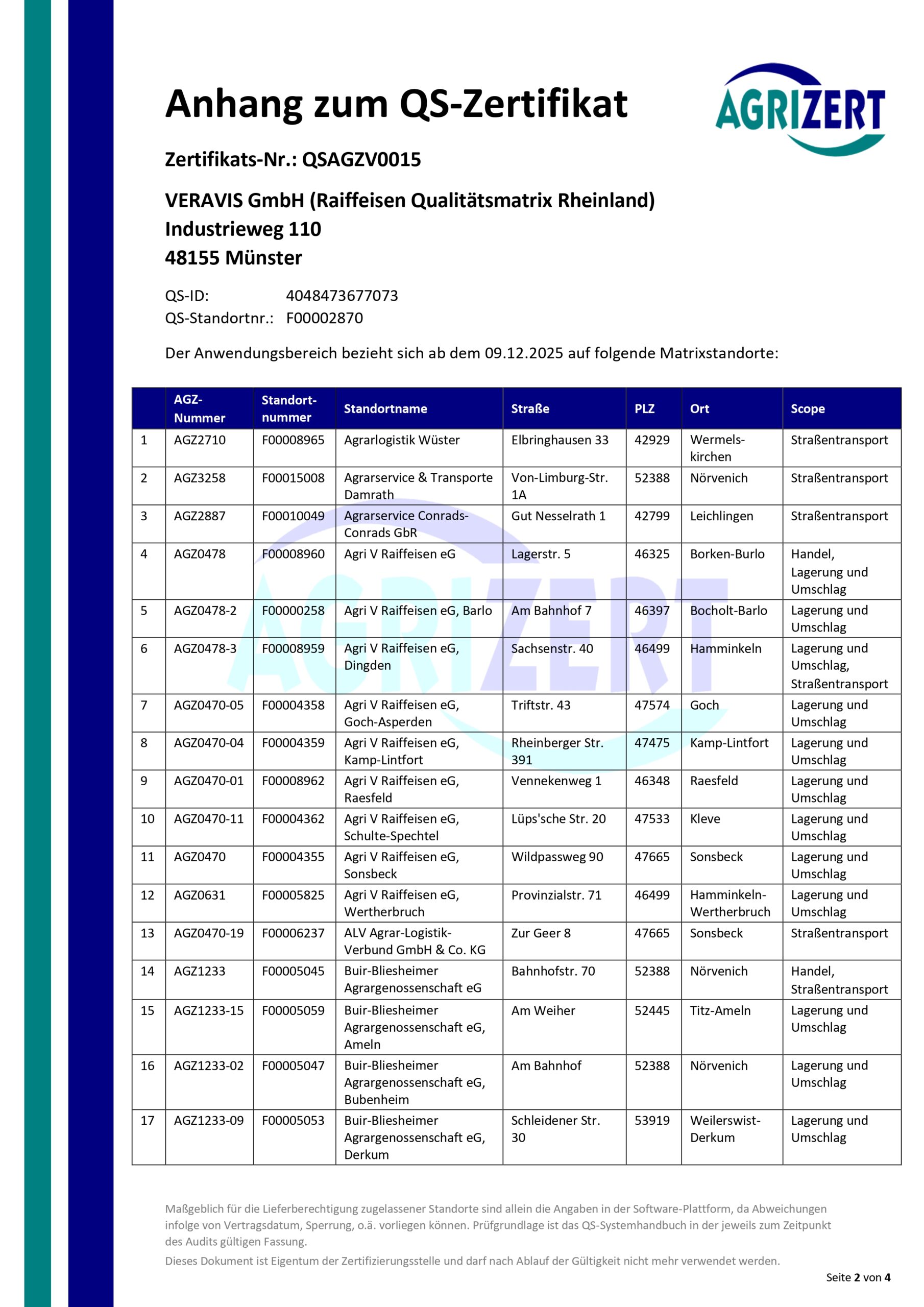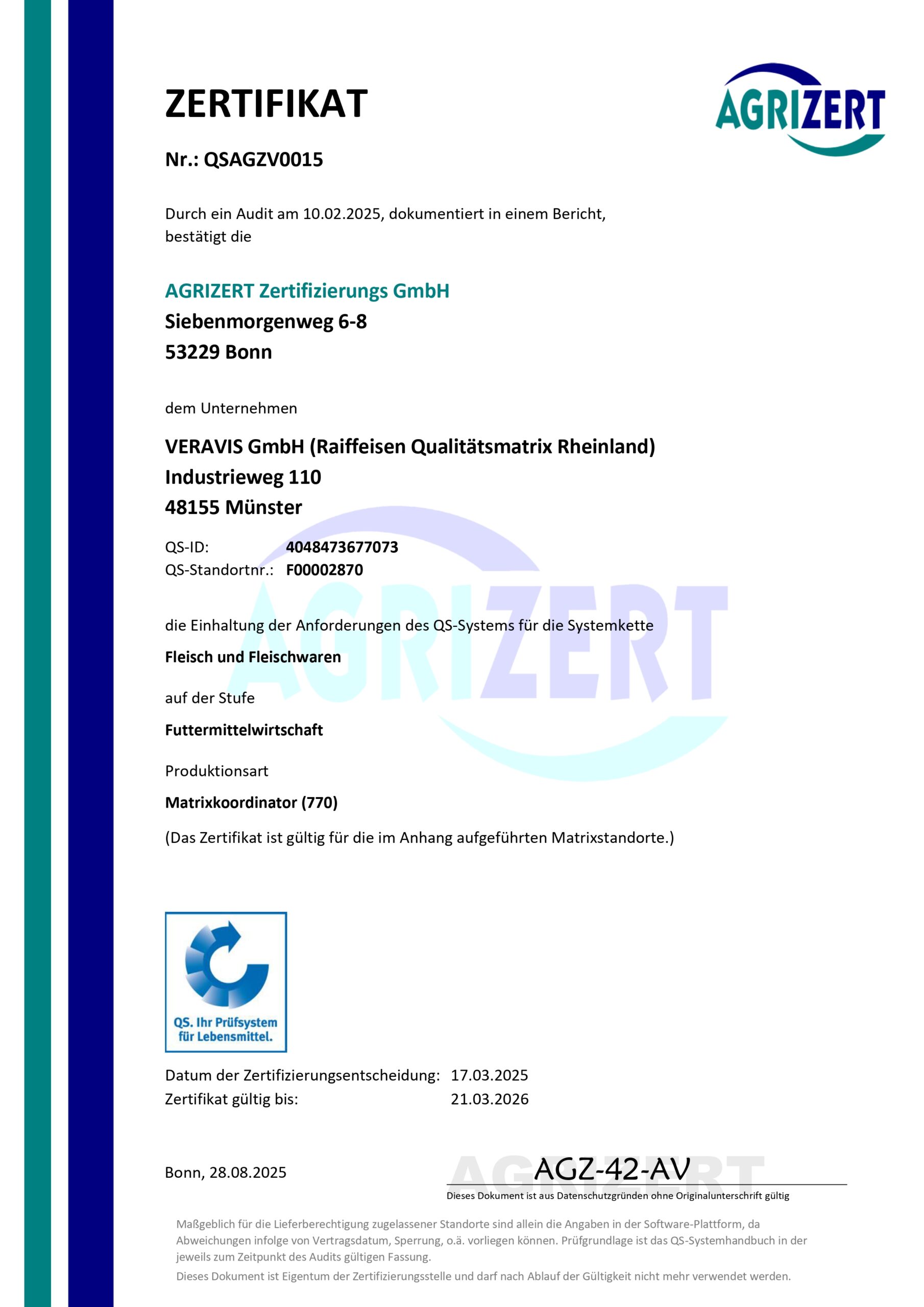 Als QS-zertifiziertes Unternehmen erfüllen wir alle relevanten Anforderungen und Richtlinien im Bereich Transport und Logistik. Die QS-Zertifizierung steht für kontrollierte Prozesse, transparente Abläufe und einen verantwortungsvollen Umgang mit sensiblen Gütern – insbesondere im Futtermittelbereich.